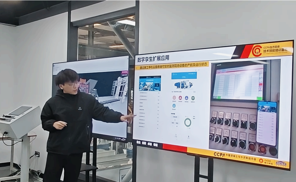 På träningsplatsen fick deltagarna en intuitiv förståelse av hela processen för digital kontroll för icke-eldade tegelmaskiner, från råmaterialblandning till färdig produktkuring, genom det digitala tvillingsystemet. Systemet samlar in produktionsdata i realtid, vilket möjliggör exakta förutsägelser av mögelslitage, hydraulisk systemstatus och andra driftsförhållanden för utrustning. Instruktörer gav detaljerade förklaringar av huvudmaskinparametrarna för blockproduktion och kompletterade dessa med praktiska demonstrationer, vilket gjorde att deltagarna snabbt kunde behärska kärnfärdigheter genom en kombination av teori och praktik.