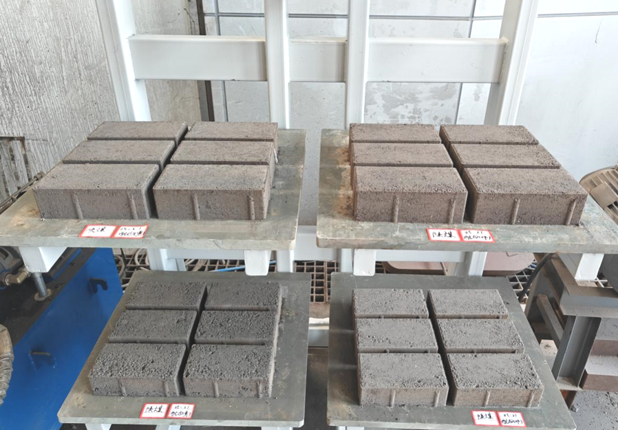 Under experimentet utnyttjade det tekniska teamet fullt ut de tekniska fördelarna med Quangongs icke-eldade tegelmaskin. De justerade vibrationsfrekvensen, formningstrycket och härdningsprocessen specifikt för egenskaperna hos stålslagg. Efter upprepade försök slutfördes den optimala blandningsdesignen: med 40 % stålslagghalt, kombinerat med specifika proportioner av hjälpmaterial och tillsatser. Detta framgångsrikt producerade betongblock som uppfyller hållfasthetskraven och uppvisar utmärkt hållbarhet, som helt överensstämmer med standarder för byggstenar.